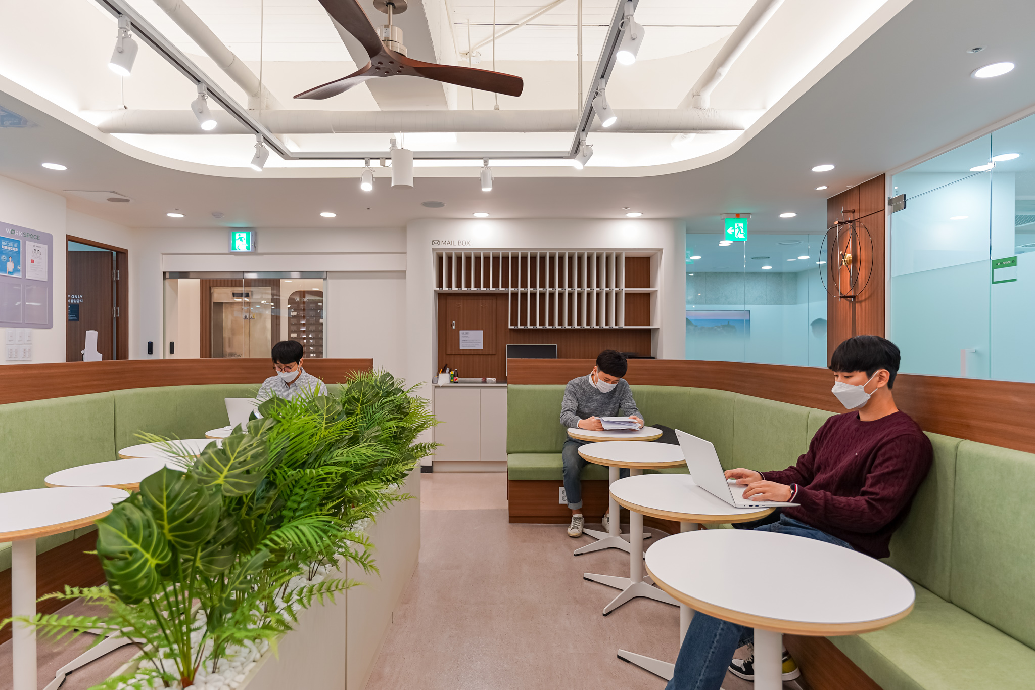 개인적인 업무에 적합한 공간을 선택할 수 있으며, 회의실, 라운지, 카페 등