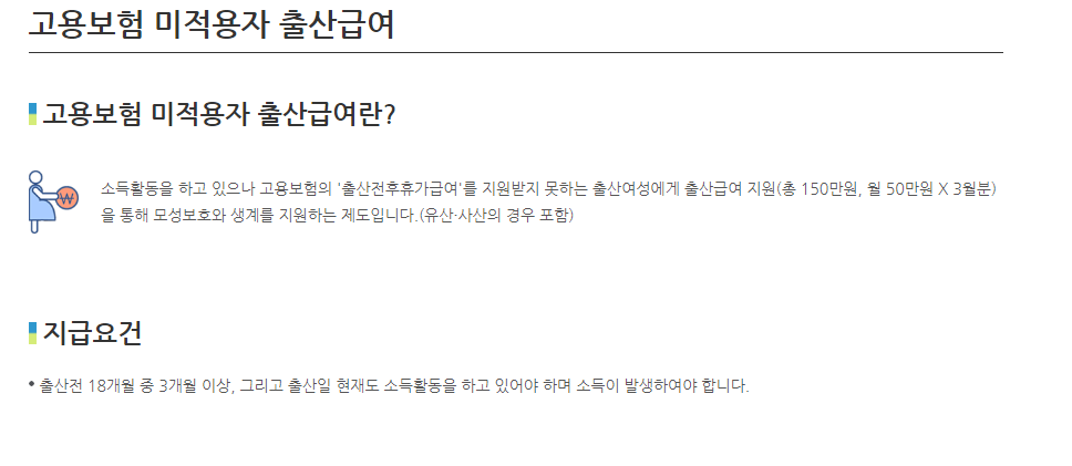 고용보험 미적용자 출산급여 출산 후 1년안에 150만원 신청하세요