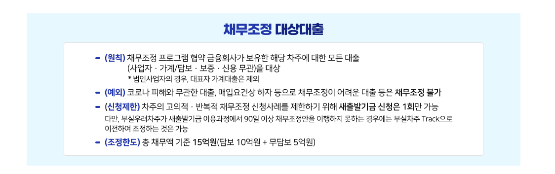 채무조정 대상은 아래와 같습니다
