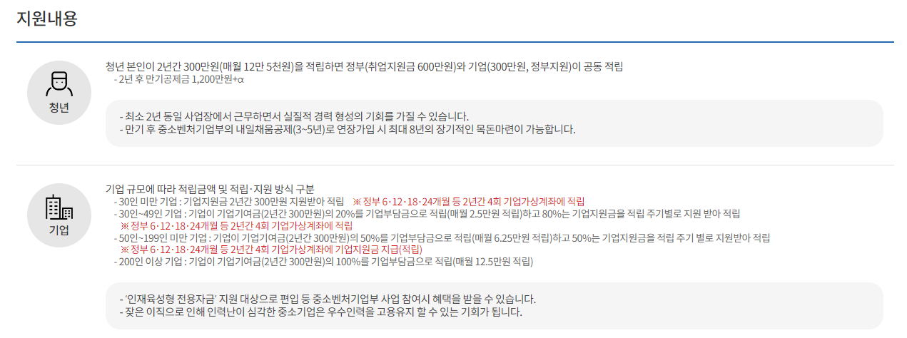 - 청년은 매월 125,000원 납입하며 기업은 2년간 최대 300만 원 적립해야 합니다