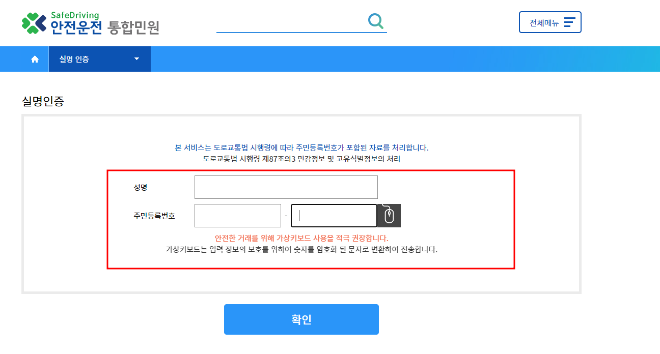 도로교통공단 통합민원 사이트에 접속해해서