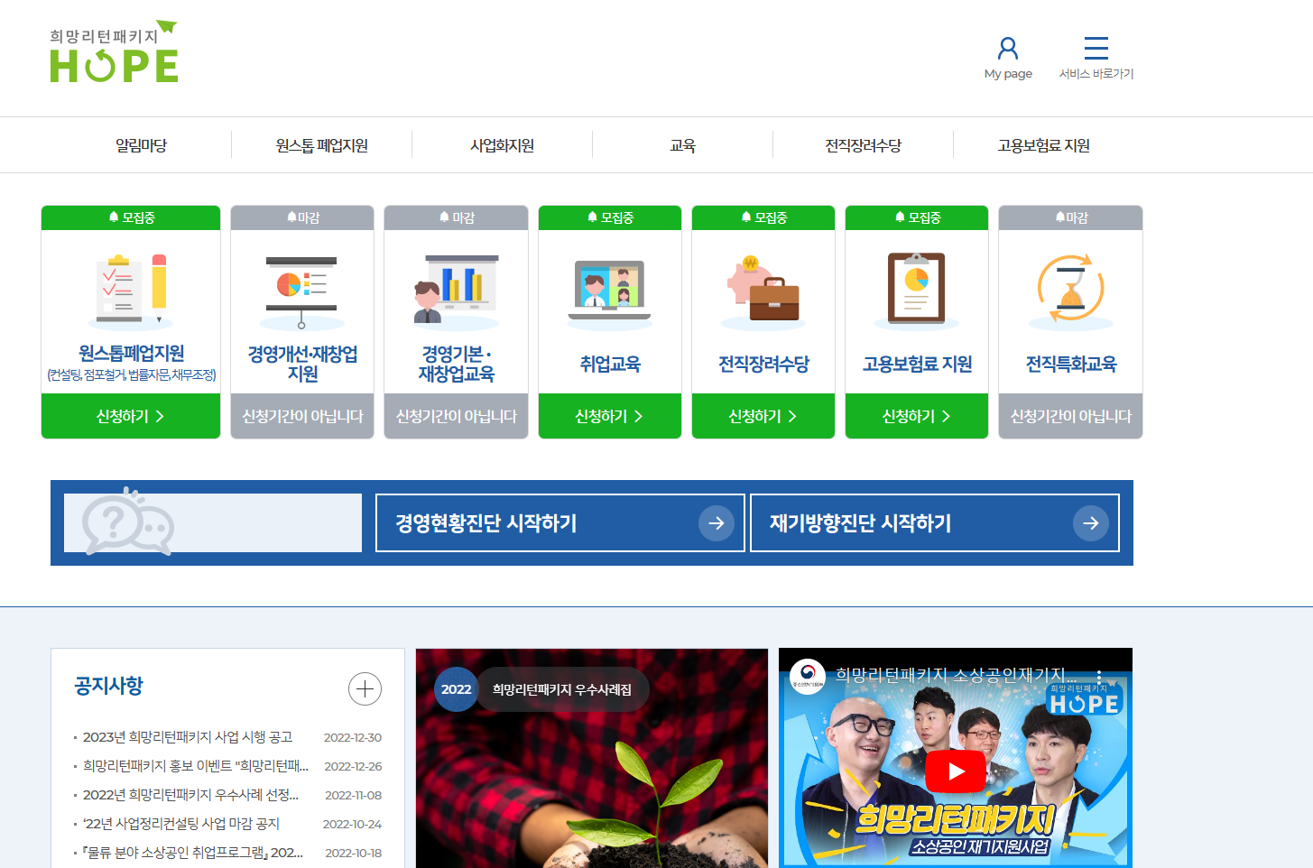 이밖에도 재취업지원, 재창업지원, 경영개선지원 등 다양한 사업이 있으니