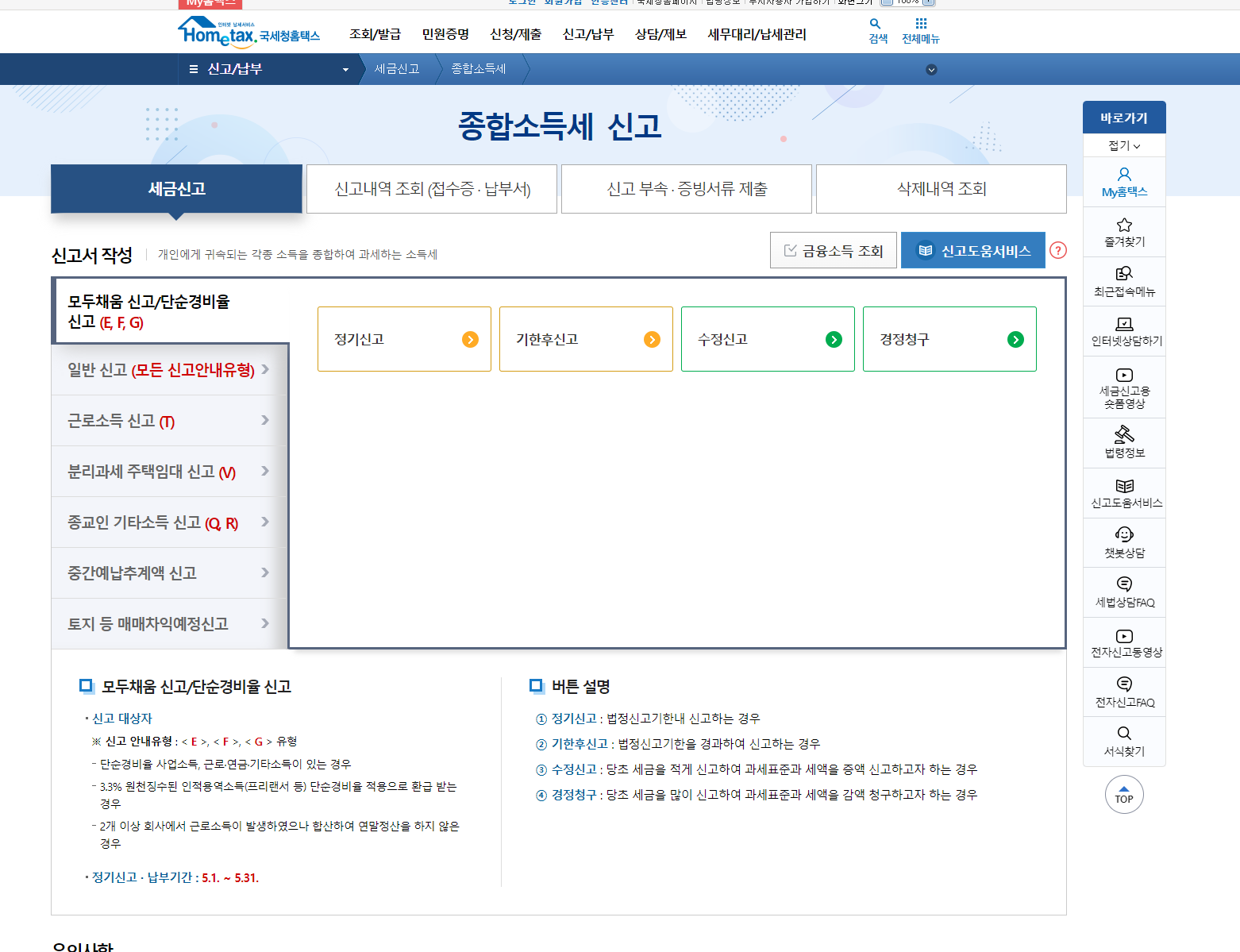 매해 5월 1일~5월 31일 국세청 홈택스 사이트나 세무서를 방문해 신고합니다