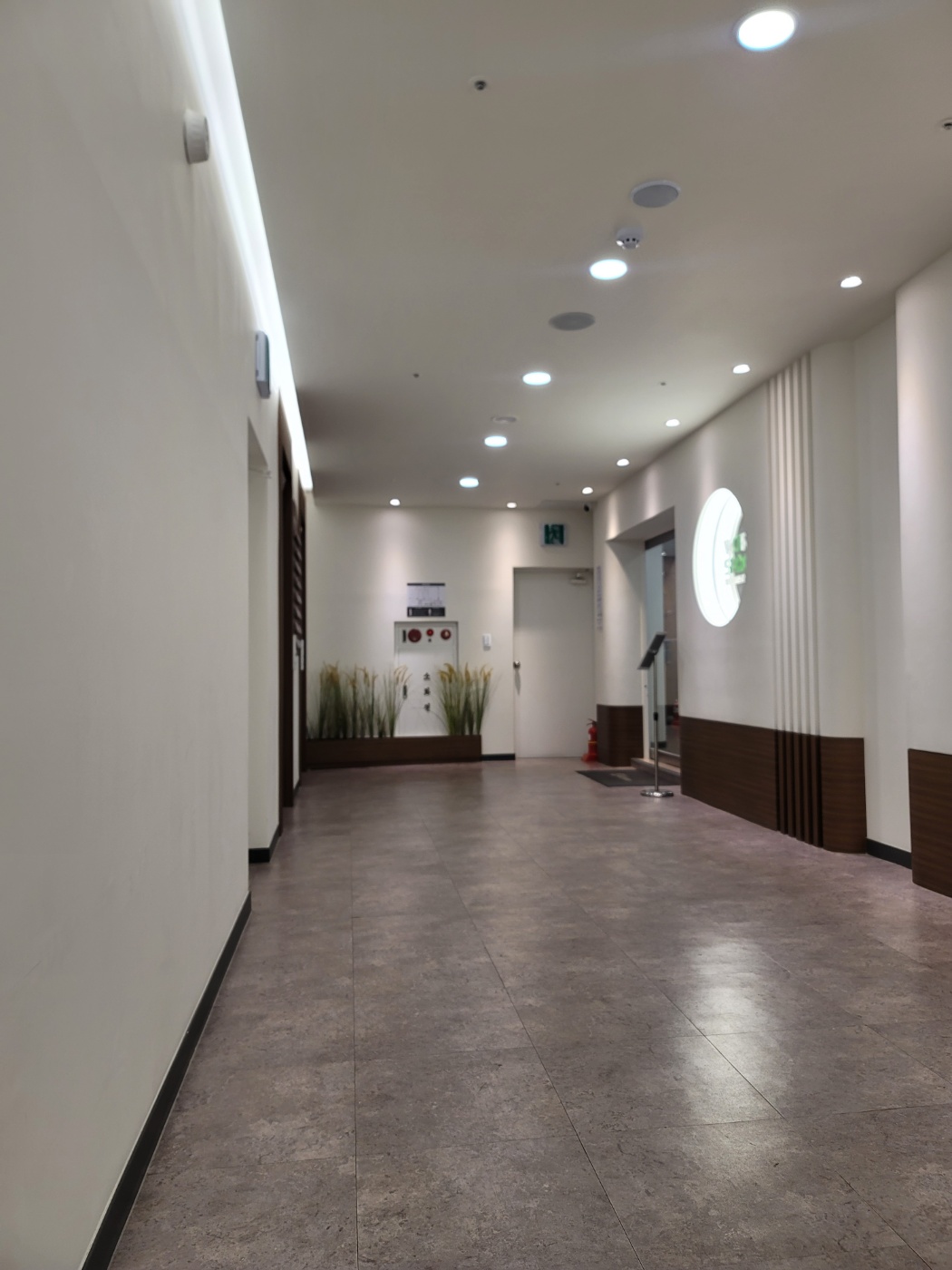 엘리베이터 9층에 내리면 넓은 공용복도와 입구가 나오는데요