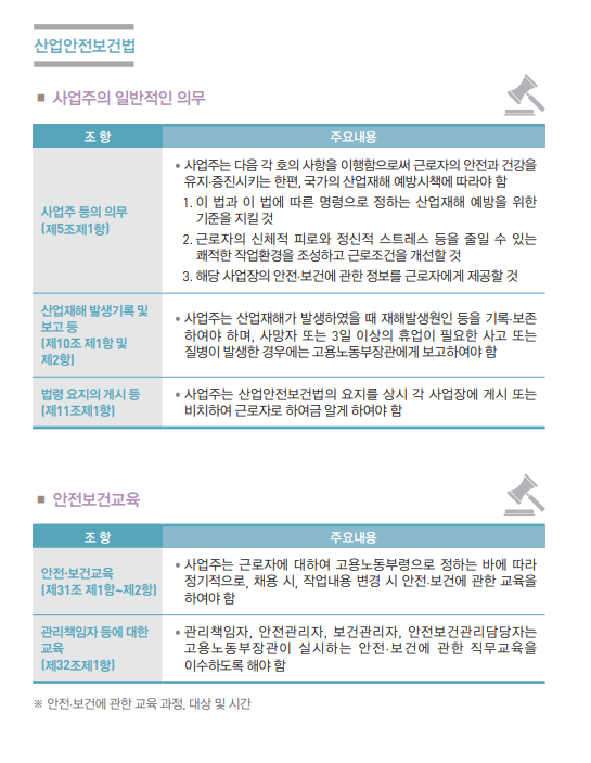 산업 안전 보건법에서 사업주의 일반적인 의무로서 근로자의 안전한 건강 유지 증진을 위한 사항을 이행하여야 하고